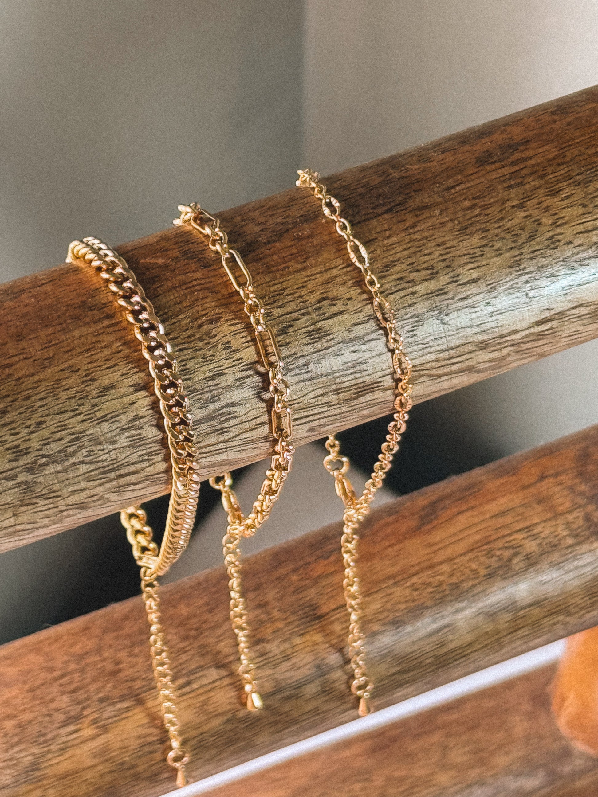Stack of 3 tarnish resistant, bracelets.